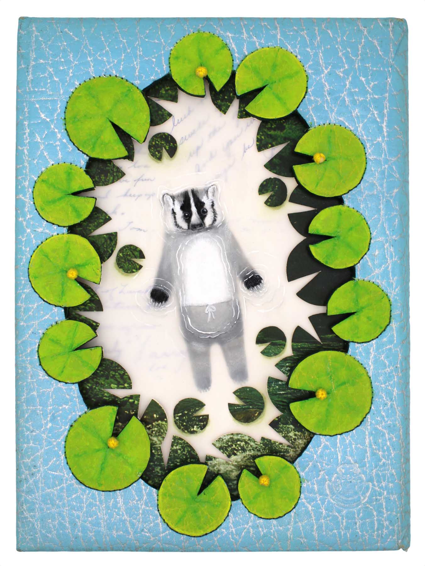 hand-cut altered book, vellum, vintage thread, acryla gouache, acrylic, wood beads
